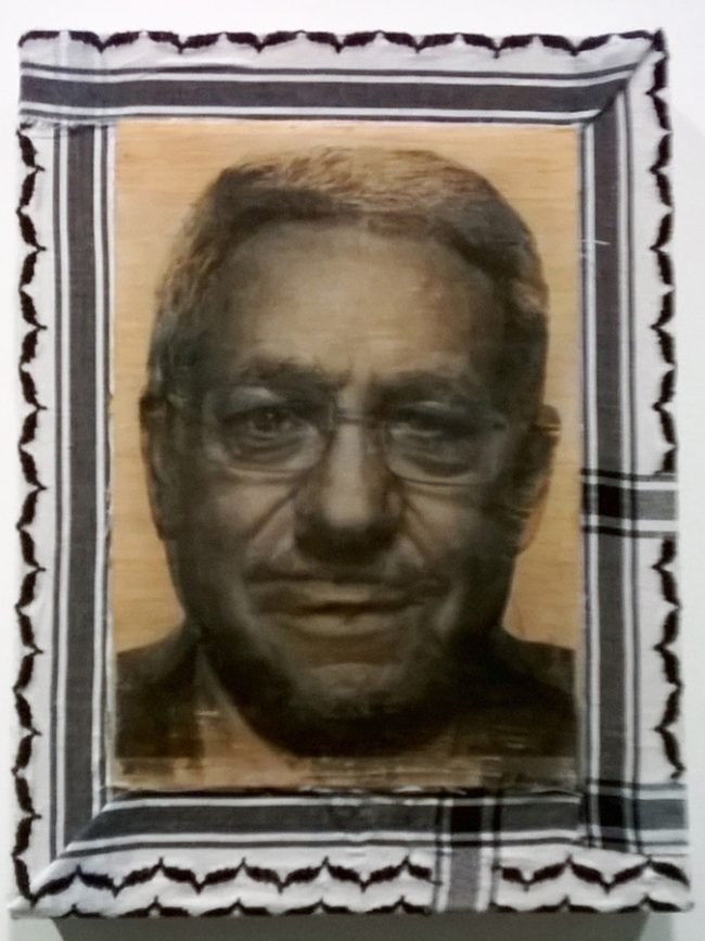 The portraits of the Palestinian President (Mahmoud Abbas) and the Prime Minister of Israel (Benjamin Netanyahu), one on top of the other (mix media).