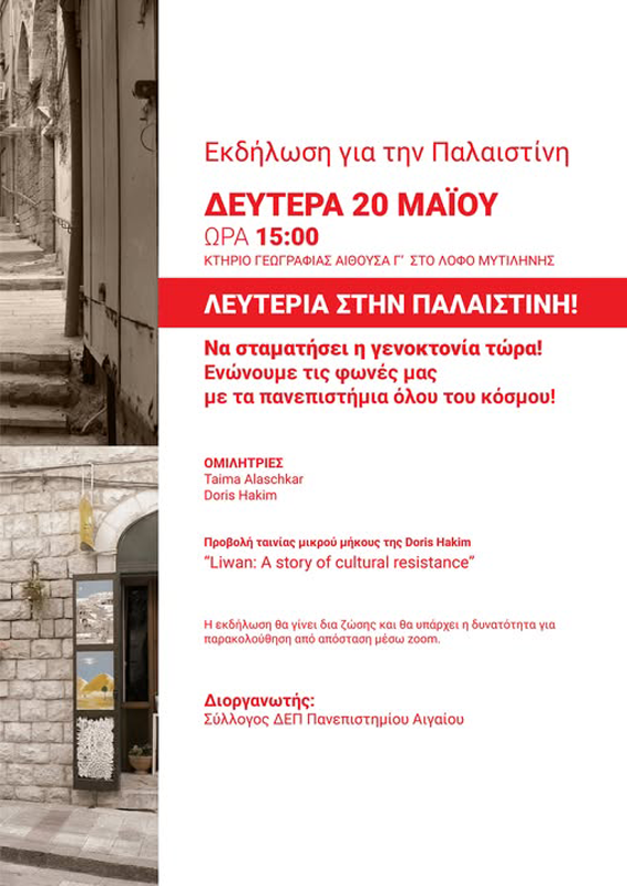 Event for Palestine, artist talk and documentary screening, University of Aegean (Mytilene)