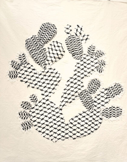 The Kuffiieh is a symbol of the Palestinian people, an emblem of national struggle, unity and activism. The idea is to use it the as a foundation material and play with the idea of what is beneath.