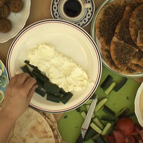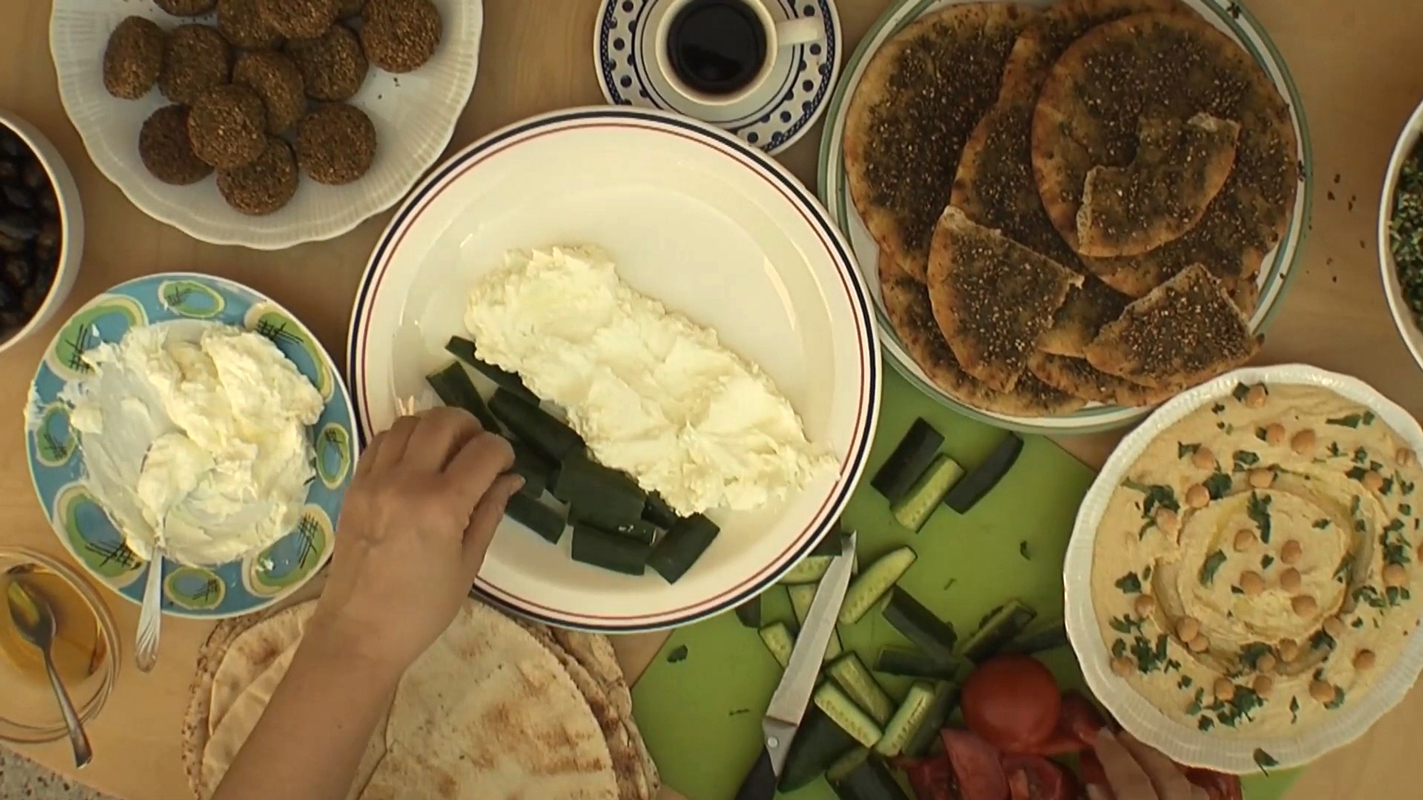 Palestinian breakfast is a significant aspect of the local culture, representing a time when families and friends come together chat and eat. The traditional breakfast consist fresh vegetables, olives, labaneh –yogurt cheese spread, hummus manakish (dough spread with zaatar-local oregano), making breakfast a colorful and tasty affair.