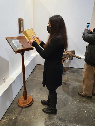 The transformation of an encyclopaedia volume to a religious book. Sound by Makis Solomos, whispering words from the encyclopaedia volume combined with payers, speeches of the Pope Fancisco on themes of the abuse caused by the cleric.